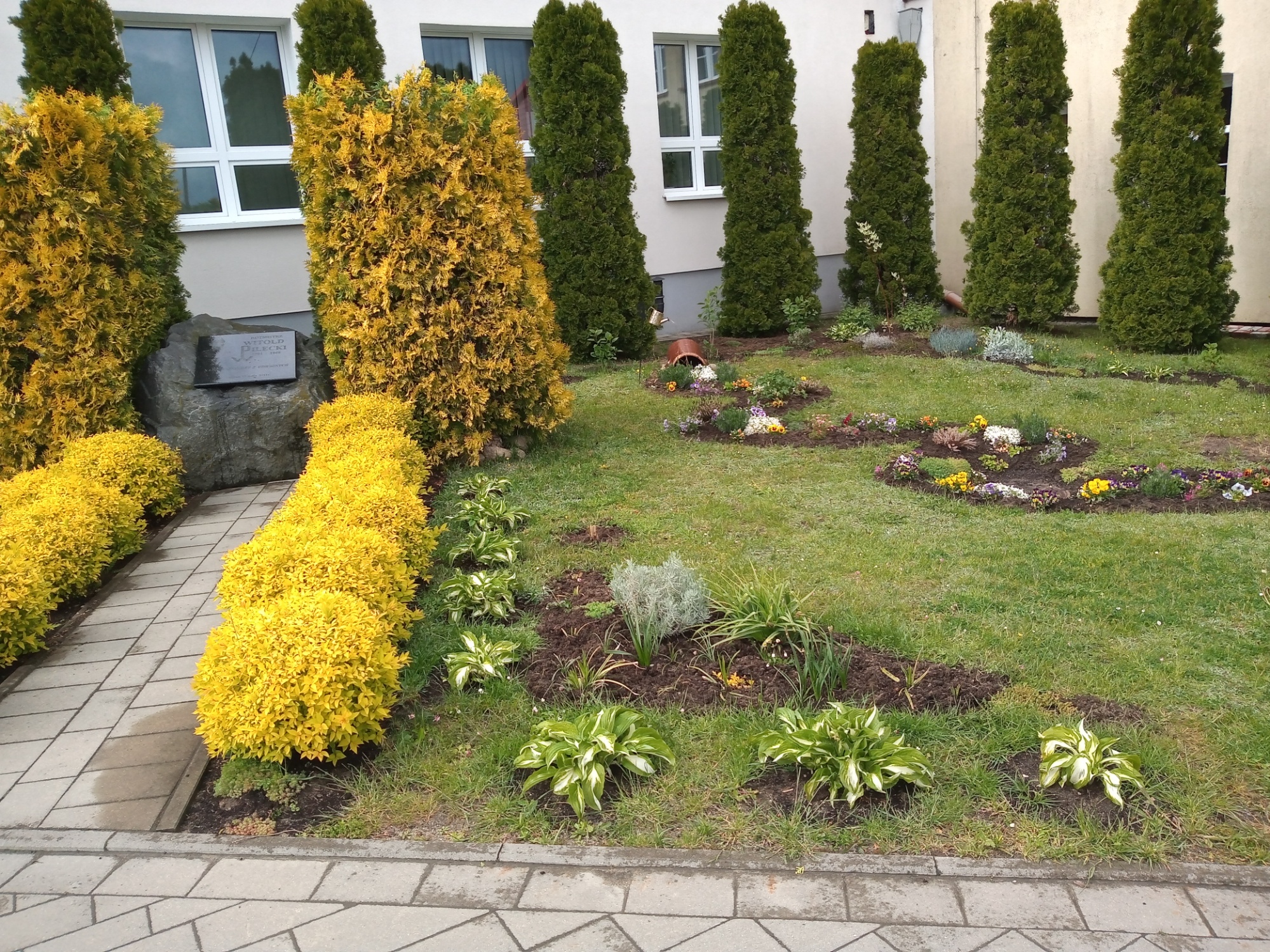 Ogród roślin ozdobnych przed szkołą